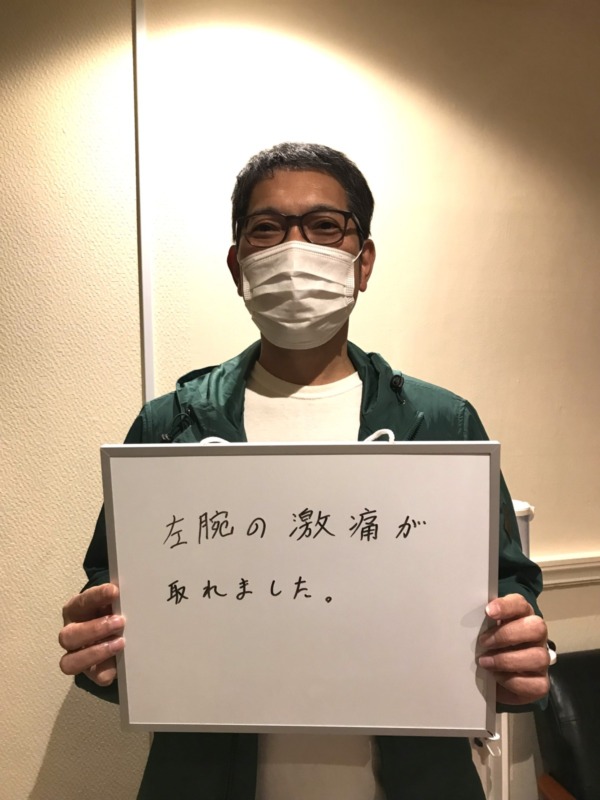 みかねた同僚の紹介で、ここに来て施術を受けると1回目の施術後に激痛が無くなり、2~4回目で上腕の痛みも無くなりました。